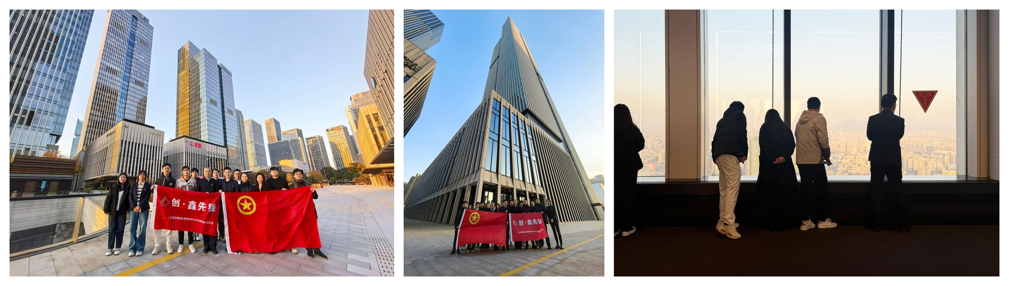 团员青年集体参观了金融城二期C3栋的沙盘展示区,通过讲解员的系统介绍,大家全面了解了金融城的发展脉络、功能规划与远景目标,并从青年视角,对公司深耕金融投资领域的设址布局有了直观立体认知。登上紫金金融大厦(C1)顶楼观光层,立于416.6米高空,环顾360度全景落地窗,整座城市的脉动清晰可见——金融城楼宇林立、路网纵横,生动勾勒出区域发展的强劲势头。登高俯瞰、抚今思昔,切身感受到个人发展与公司前进轨迹的同频共振,进一步坚定了团员青年投身企业发展的信心。