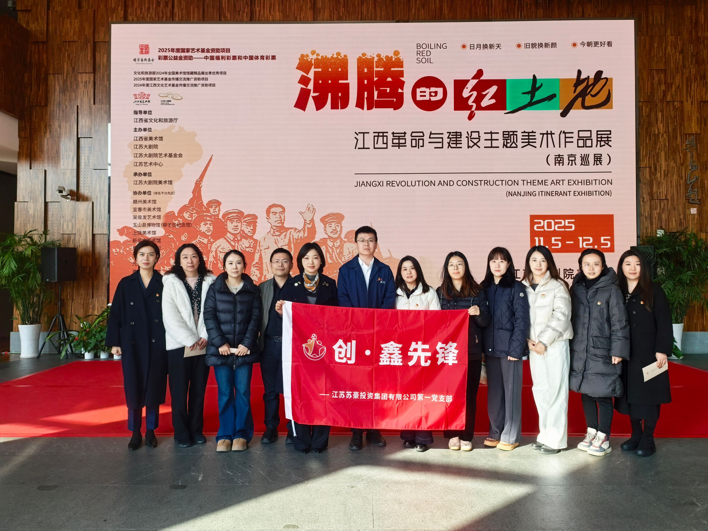 12月3日,投资集团第一党支部组织全体党员、发展对象及入党积极分子十余人,赴江苏大剧院美术馆参观《沸腾的红土地——江西革命与建设主题美术作品展(南京巡展)》,进一步坚定理想信念,增强党性修养,深化党史学习教育,传承自我革命精神。