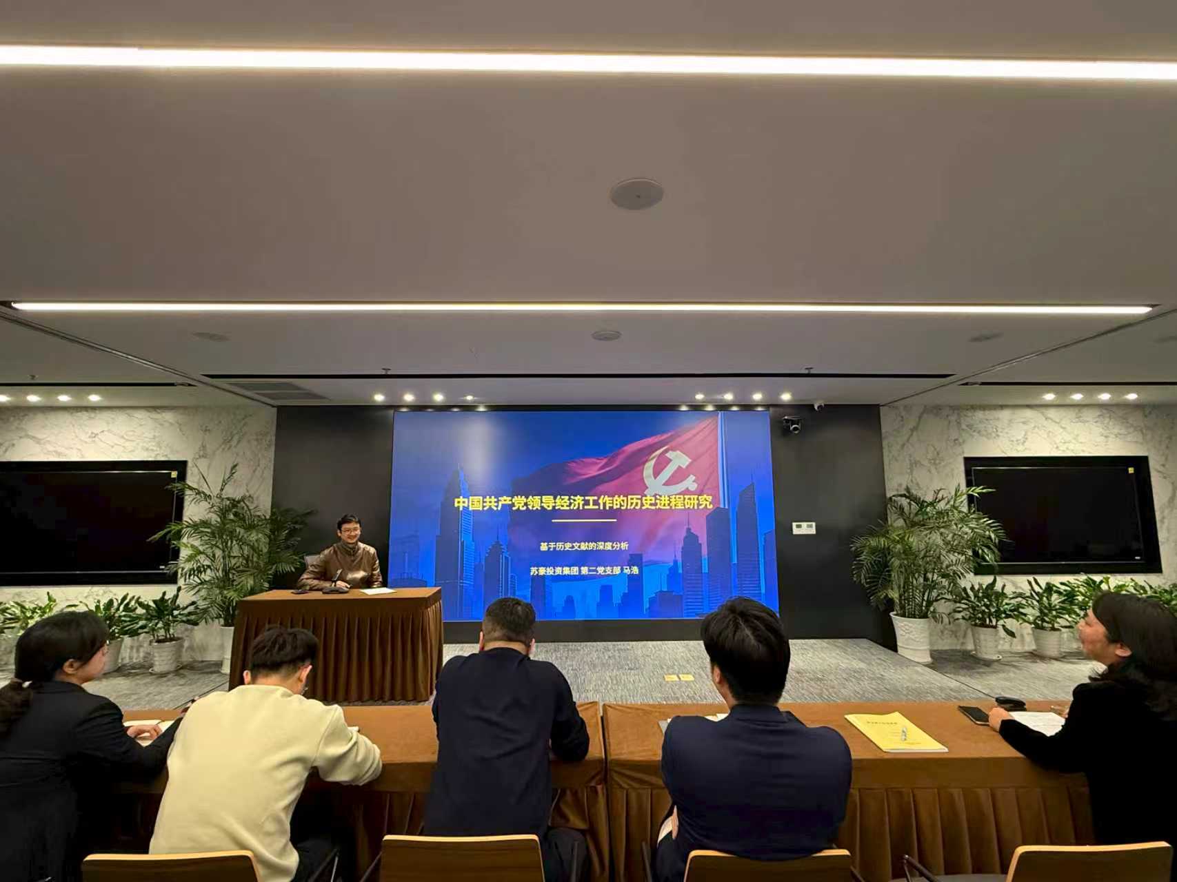 为深入学习习近平经济思想,领悟中国共产党领导经济工作的历史经验与实践智慧,夯实党员同志的理论基础与思想认识,苏豪投资集团第二党支部组织开展专题学习,党员马浩同志讲授党课《中国共产党领导经济工作的历史进程研究》。支部全体党员、入党积极分子共同参与学习,在回顾历史脉络、分析体制架构、总结宝贵经验中凝聚发展共识、汲取奋进力量。